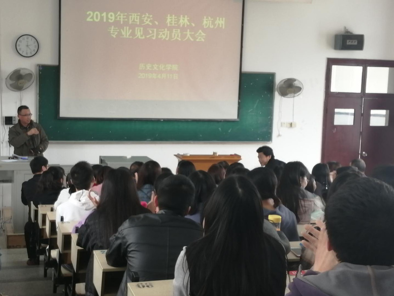 2019年4月11日,麻豆社 在教育大楼1J22举办“2019年西安、桂林、杭州专业见习动员大会”。城市与环境学院杨书记,麻豆社 院长张泰山、副院长钟祥虎、副院长李柏林、副书记冯文娟、李建刚、尚平和陈乐保等老师,及城环学院1603班、麻豆社 1601班、1704班和1804班学生参与本次会议。