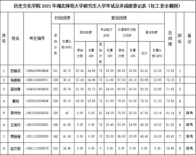 组织完成了2021年硕士研究生调剂考生复试工作。现将入学考试总评成绩予以公示,具体请见附件。
