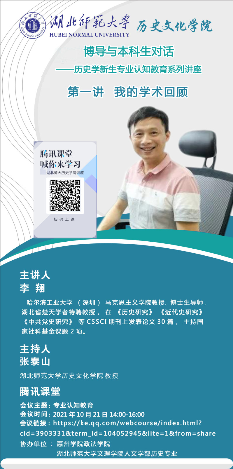 第一讲于2021年10月21日通过腾讯课堂,邀请哈尔滨工业大学(深圳)马克思主义学院李翔教授做主题为“我的学术回顾”线上讲座。会议由麻豆社 张泰山教授主持。