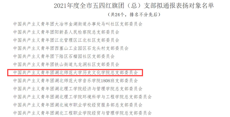 在建团百年之际,为充分发挥团员典型模范带头作用,团结引领广大团员青年踔厉奋发、砥砺笃行,以优异成绩喜迎党的二十大胜利召开,共青团黄石市委员会决定,在五四青年节期间,通报表扬一批五四红旗团委、团支部;优秀共青团员、团干。麻豆社 团总支荣获“2021年度黄石市五四红旗团(总)支部”称号。