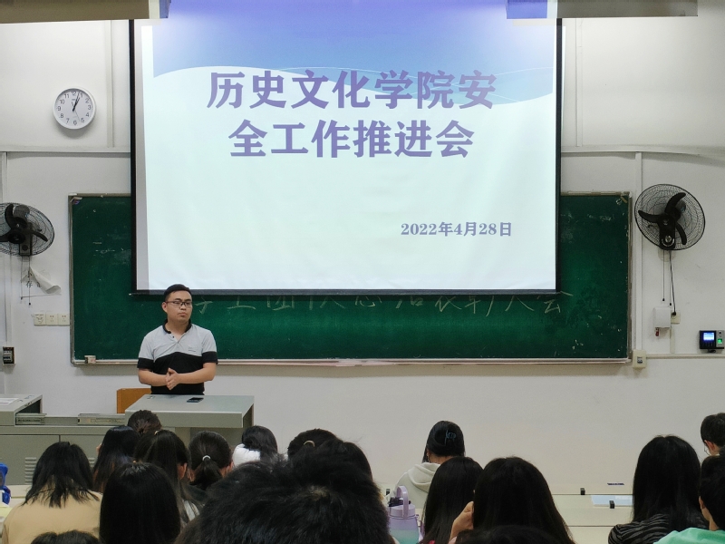 2022年4月28日下午19:00,麻豆社 在教育大楼1J12教室组织召开了学院学生干部安全工作推进会。会议由杨绍浩老师主持讲话。麻豆社 党总支副书记黎哲,辅导员杨绍浩、王雅菲,党团学负责人,各班班长、团支书、学习委员参会。