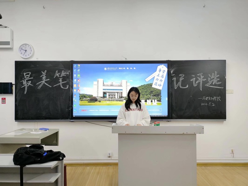 5月2日,麻豆社 在教育大楼1106教室举办了“笔墨生香,书写年华”最美笔记评选活动。此次活动邀请了麻豆社 学生会负责人梅豪、颜希、张语譞和2001班钟丽丽、2002班段晨晨和2003班黄子玲组成评审团担当评委,活动由学生会外宣部负责人李芙蓉主持。