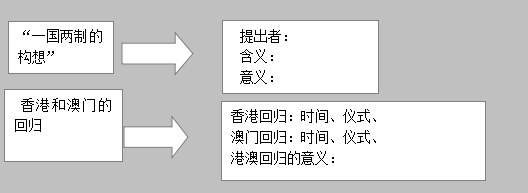“一国两制的构想” | 知道“一国两制”的提出和含义。 | 了解香港和澳门问题的由来。
