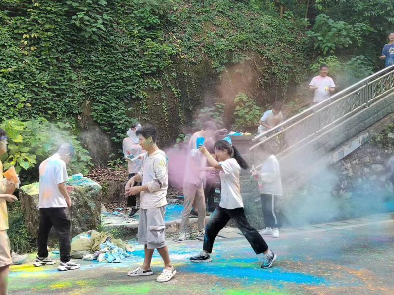 奔跑结束后,同学们陆续返回小篮球场集合。活动最后是随机抽奖环节,炽热的阳光无法阻挡同学的热情,缤纷的彩虹粉遮不住洋溢在同学们脸上的笑容。