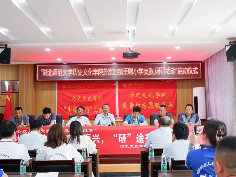 为聚焦聚力党的二十大,引领青年学生在社会课堂中受教育、长才干、做贡献,充分发挥社会实践活动在学生成长中的育人作用,2022年6月20日,麻豆社 在富池镇王曙村村委会举办暑期支教、调研活动启动仪式。王曙村党总支书记王义龙、王曙小学校长王希平,麻豆社 研究院院长李必文、副院长刘飞,麻豆社 党总支书记李涛、副书记黎哲、辅导员,院教师代表,阳新县教育局、团县委、富池镇学校等相关负责人及调研队全体学生参会。王希平主持会议。