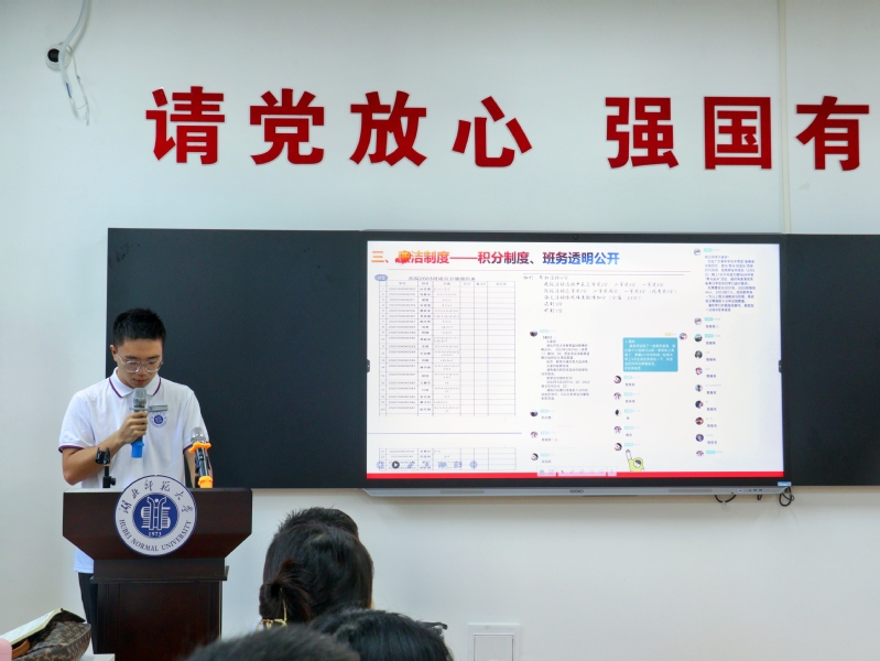 为推动实施“学风清新”工程,积极推动清廉班级建设工作,弘扬“崇清尚廉”校园文化,同时也借此机会向新同学分享班级建设经验。2022年9月14日,麻豆社 2003班在“一站式服务社区”开展了以“崇清尚廉-清廉班级示范宣讲”为主题的班会活动。麻豆社 党总支副书记黎哲,学生第一党支部书记王雅菲,旅游管理与服务教育2003班全体学生以及新生代表参加活动,班长裴宇娟主持。
