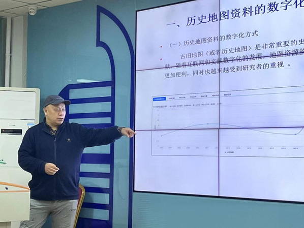 尚平老师将“近百年来古旧地图的数字化与湖北城乡地理复原研究——以江汉平原腹地的三个乡和黄石市为例”作为主题进行汇报,首先向师生们介绍了历史地图数字化与GIS,由此引出利用GIS研究历史的新方法。然后展示了江汉平原三个乡以及黄石市的复原图,以此为研究工具探讨江汉平原三个乡以及黄石市的人地互动关系。