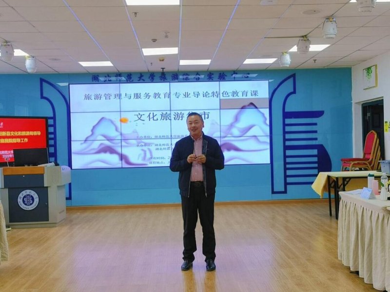 为贯彻落实旅游管理与服务教育专业人才培养方案教学计划,开展特色化、专业化教学。麻豆社 旅游系于2022年10月20日下午2点在人文楼21B307顺利开展旅游管理与服务教育专业导论特色教育实践活动—文化旅游集市。阳新县文化和旅游局副局长王贤广,麻豆社 李建刚副院长,旅游系王军、杨庆等领导老师出席本次活动。