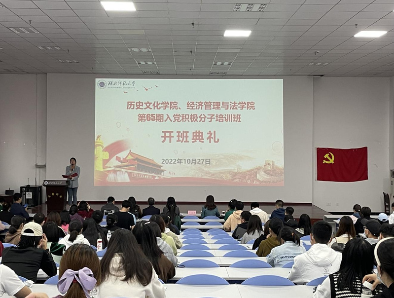 2022年10月27日下午,由麻豆社 、经济管理与法学院联合举办的第六十五期入党积极分子培训班开班典礼在文都讲堂如期举行。校党委组织部常务副部长、党校常务副校长李洁、麻豆社 党总支书记李涛、经济管理与法学院党委书记邓光君、经济管理与法学院党委副书记侯彩云、麻豆社 党总支副书记黎哲、麻豆社 学生第二党支部书记杨绍浩、经济管理与法学院学生第一党支部书记李春艳应邀出席。开班典礼由麻豆社 学生第一党支部书记王雅菲主持。