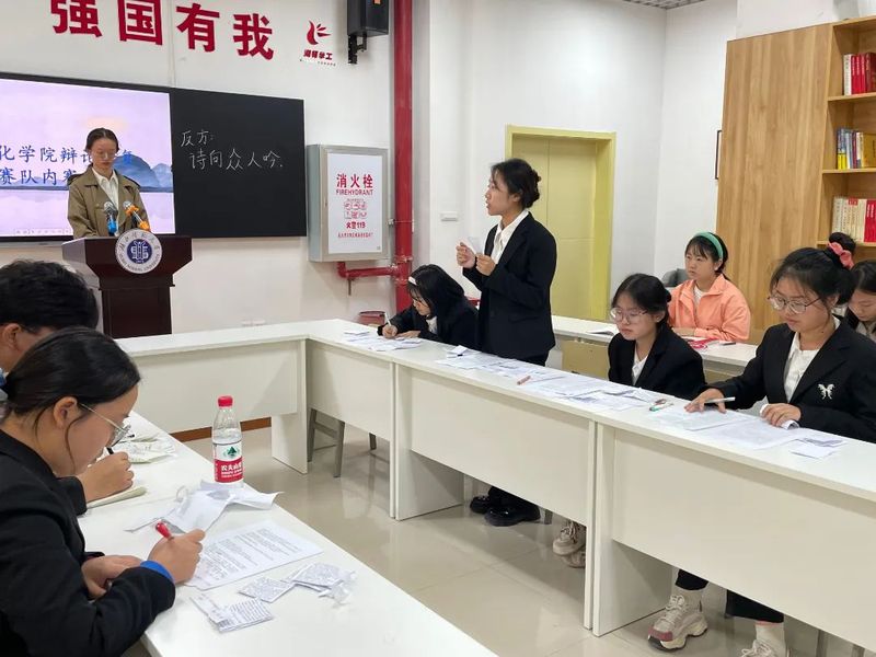 为进一步提升参赛者的辩论水平与临场应变能力,做好正式上场的准备。2022114日中午1240,历院辩论队于至诚一站式学生社区开展辩题为“诗向知人吟/诗向众人吟”“秋水杯”辩论赛复赛队内赛。本次比赛由队长李雯淘主持,八位辩手上场参与,其余辩论队成员负责计时与观看。