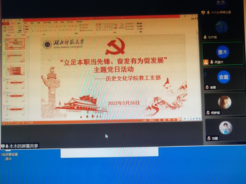 在交流发言中,黎哲和王雅菲同志就 5月26日晚上,麻豆社 教工支部在腾讯会议上开展5月主题党日活动,活动由麻豆社 教工支部书记穆昭阳主持。