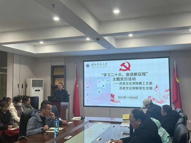 2022年11月30日下午,麻豆社 教工支部与学生支部联合举办“学习二十大,奋进新征程”主题党日活动,全体教工支部党员及31名学生预备党员参加活动。活动由支部书记穆昭阳同志主持。