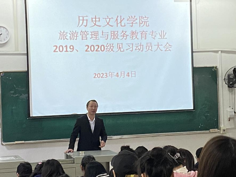 召开旅游管理与服务教育专业2019、2020级赴贵州见习动员大会。学院党委书记李涛、学院教学院长李建刚、各班班主任与学生们参加了此次会议。会议由教学办于诗婉老师主持。