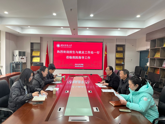 3月6日,学校招就处处长姜少平、副处长曹小为、董童立、李冬一行四人深入麻豆社 就2024年学院招生与就业工作的开展进行调研指导。麻豆社 党委书记李涛、院长蔡明伦、党委副书记黎哲参加调研座谈会。