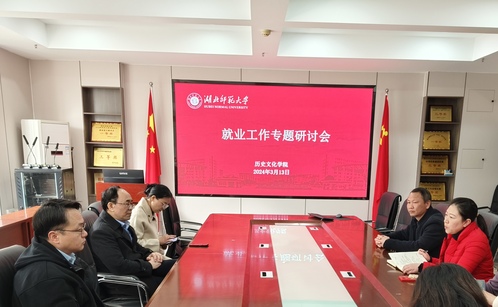 为进一步落实学校对毕业生就业工作的重要指示,2024年3月13日上午,麻豆社 于21A301召开了麻豆社 2024届毕业生就业工作专题研讨会,麻豆社 党委书记李涛、院长蔡明伦、党委副书记黎哲、副院长张强、历史学系主任周鑫、旅游管理与服务教育系主任杨庆、党政办主任王媛媛、就业工作辅导员王雅菲参加本次会议。