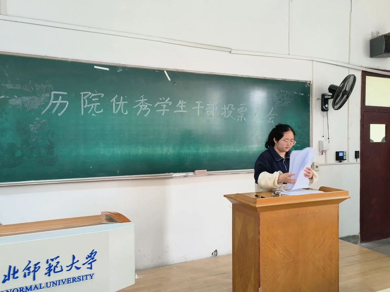 此次投票采用不记名投票方式,首先由学生会秘书部的同学将参与此次优秀学生干部评选的人员名单发到在场每位同学手中,然后每个同学在名单上打钩投票,完成投票后将名单交至秘书部王嫣语。最后,由学生会秘书部全体人员进行统票。