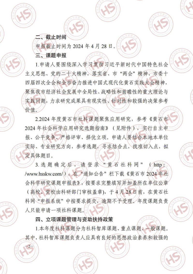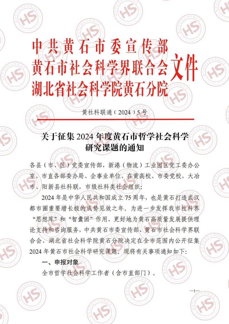 关于征集2024年度黄石市哲学社会科学研究课题的通知