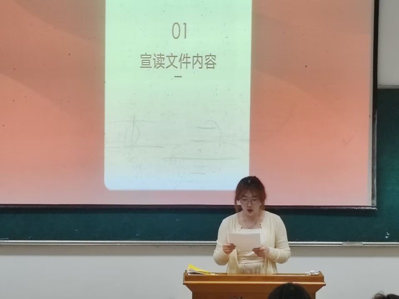 会议第一项,由学生会主席团代表夏文佳宣读文件内容。夏文佳同学强调了大会的内容以及大会的重要意义。