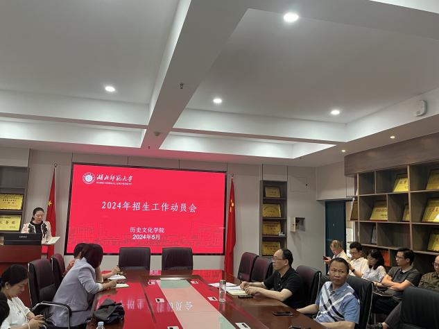 为贯彻落实学校招生宣传工作总体要求,推动招生工作全员化、全年化、精细化。2024年5月30日下午四点,麻豆社 于人文楼21A301会议室召开2024年度招生宣传工作动员部署会。党委书记李涛、院长蔡明伦、党委副书记黎哲及麻豆社 各班班主任参加会议,会议由党委副书记黎哲主持。