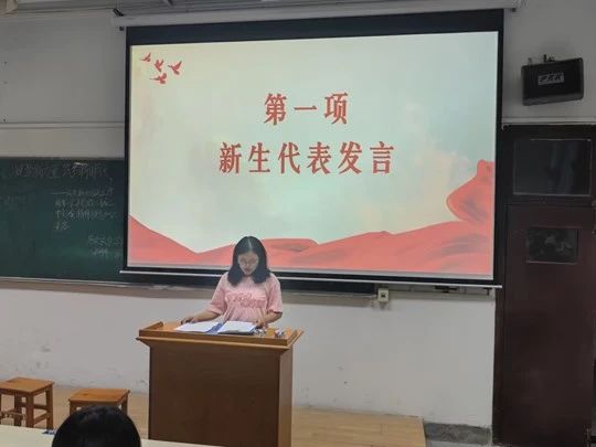 活动伊始,新生代表李绍荣同学上台发言,向同学们阐述了党的二十届三中全会精神,并号召同学们贯彻会议精神,坚定理想信念,提升个人素养,听党话,跟党走,以青春之名书写奋斗华章,筑梦新时代。