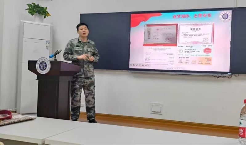 徐祺恺同学分享他从参军入伍到退役复学的故事,讲述了他积极响应国家号召,远赴东北林海雪原的故事,他在军营中挥洒汗水、保家卫国,防汛抗疫冲锋在前,勇挑重担。退役复学后,他退役不褪志,退伍不褪色,依然怀揣着满腔热血,投身于为人民服务的广阔天地。他自费组建志愿服务队,在不同的岗位上继续发光发热,为社会贡献着自己的力量,展现了退役士兵的责任与担当,鼓励同学们积极承担社会责任,书写属于自己的辉煌篇章。