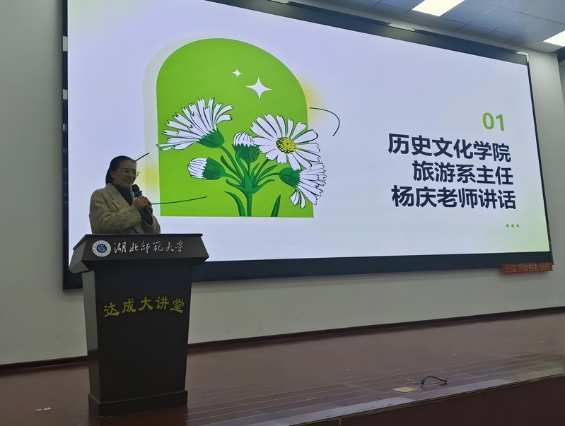 比赛伊始,旅游系主任杨庆老师发表了热情洋溢的讲话。杨庆老师强调了导游大赛在培养学生专业素养和实践能力方面的重要性,鼓励选手们充分展示自己的才华,赛出风格、赛出水平,并预祝本次大赛取得圆满成功。