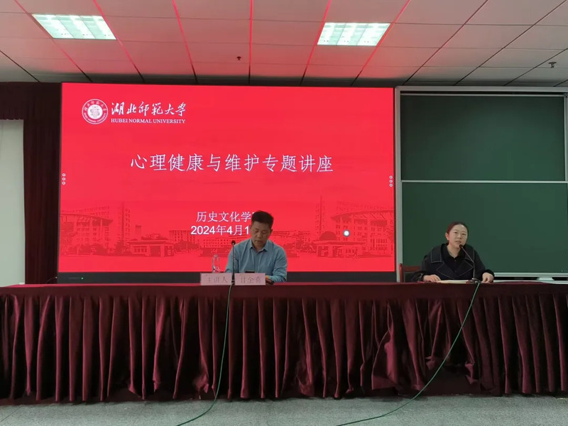 本次心理健康讲座以“心理健康与维护”为主题,邀请了黄石二医院精神心理科的甘全喜主任来主讲。活动开始前,由王雅菲老师对甘全喜医生进行了介绍,介绍完毕后宣布活动开始。
