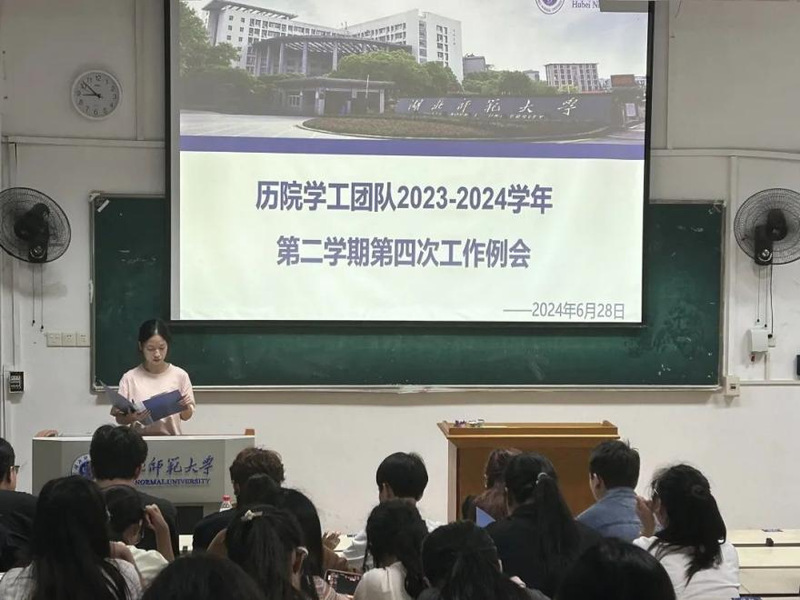 会议第二项,主席团成员代表依次上台发言。各主席团成员代表总结本组织的学期工作情况,规划暑期常规工作以及组织招新的工作计划,并对学工团队成员的学习生活提出一些建议。