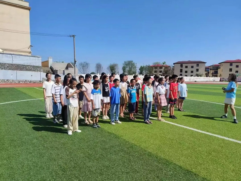 “爱童行”实践队队员们全神贯注地指导着每一个细节,就像辛勤的园丁,仔细修剪着每一株幼苗,用心呵护它们的成长。孩子们认真倾听老师的建议,并迅速作出调整,继续以饱满的热情投入到彩排中去。虽然这只是一次彩排,但他们每个人都全身心地投入其中,仿佛脚下这片操场就是他们梦寐以求的舞台。