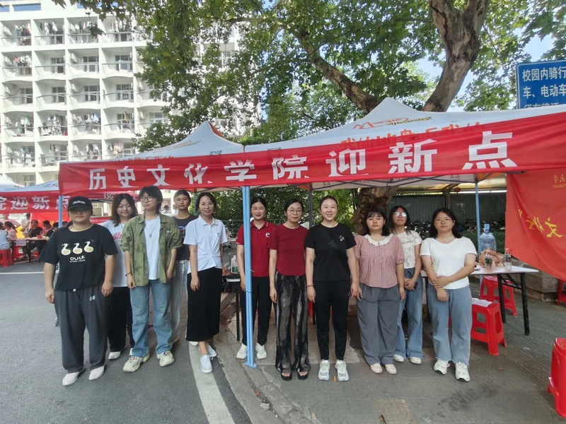 校园公交作为“迎新专列”,穿梭于校园各处,将满怀憧憬的新生安全送达迎新大本营。在迎新大本营现场,三块精心设计的展板错落有致地摆放在棚前,以图文并茂的形式,生动展现了学院的历史沿革、师资力量、科研成果,让新生在报到的同时,也能初步领略到学院深厚的文化底蕴和独特的学术魅力。