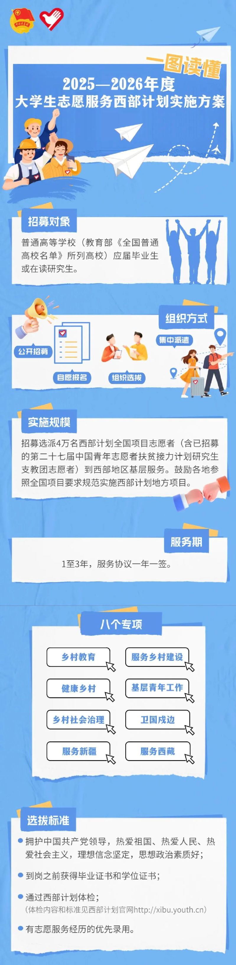 2025-2026年度大学生志愿服务西部计划实施方案一图读懂来啦!