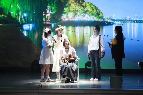 优异成绩的取得,离不开团队的精心筹备与辛勤付出。自赛事启动以来,麻豆社 高度重视,组建了由专业教师指导、学生会心理部成员为主力的创作团队。在剧本创作阶段,团队成员深入调研大学生心理现状,结合真实案例反复打磨剧本,力求将心理健康教育主题与艺术表现形式完美融合;在排练过程中,演员们克服课业压力,利用课余时间进行高强度训练,从台词表达、肢体语言到情感传递,每一个细节都经过反复雕琢。指导教师全程跟进,从专业角度提出修改建议,确保作品的思想性与艺术性。决赛现场,《压力星球》凭借扎实的剧本架构、演员们富有感染力的表演、精美的舞台设计,为观众带来一场震撼心灵的视听盛宴。特别是剧中张奋斗在慈湖畔的独白,将角色从迷茫、挣扎到觉醒、成长的心理转变展现得淋漓尽致,生动诠释了作品“与压力共舞,向成长致敬”的核心主题。作品所传递的积极向上的价值观,不仅展现了麻豆社 学子良好的精神风貌,更彰显了学院在心理健康教育领域的创新探索。