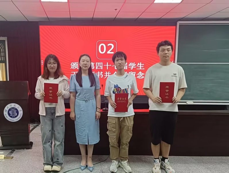 随后,党委副书记黎哲和辅导员郑甜甜分别为第四十七届学工团队主席团代表及各组织部长代表颁发了荣誉聘书并合影留念。