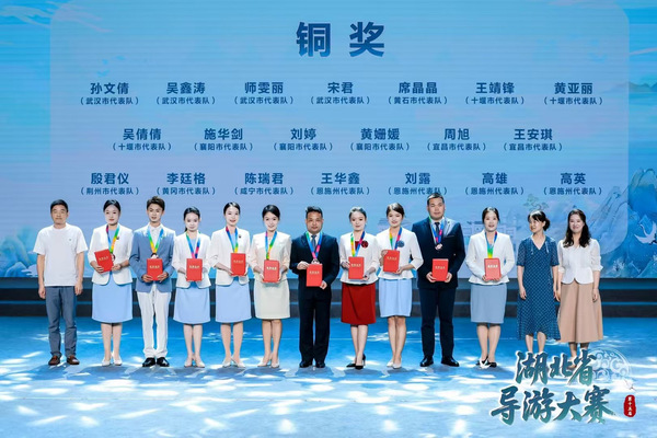 本届大赛由湖北省文化和旅游厅等四部门联合主办,是省内旅游行业权威且具影响力的高水平赛事,吸引全省各地市州及旅游企业众多顶尖选手参赛。大赛全面考察选手专业知识、讲解能力等多方面素养,席晶晶、廖晓炜历经理论考核、景点讲解等多个环节的严格考验。席晶晶以沉稳台风、专业解读等表现摘得铜奖;廖晓炜凭借亮眼发挥、清晰思路获得优秀奖。