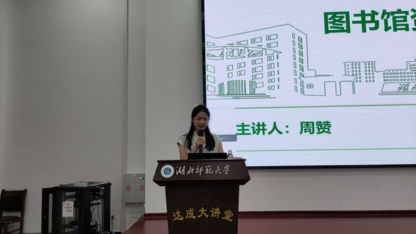 随后,周赞正式开启新生入馆教育讲解。她首先介绍了学校图书馆的基本情况:1973年建馆,地处校中心,有各类阅览室、电子阅览室,环境舒适且配空调,在人文楼设分馆,以更好地服务不同楼宇的学子;图书馆开放时间规范,如遇假期将通过官方平台发布时间调整安排;另外,读者还可通过图书馆官网、QQ、微信公众号等渠道,获取图书分布、使用指南、数据库资源等信息,以及向管理员反馈相关疑问。在馆藏资源方面,周赞作以详细说明。图书馆有186.8万多册纸质图书、2000多种中文报纸期刊、38种外文期刊,图书按《中国图书馆分类法》分类,不同学科书籍分布在不同楼层。数字资源同样丰富,涵盖学术、视频课程、考试资料等。图书馆官网提供数据库使用手册,公众号“每周一部”介绍使用方法,学校还专门开设文献检索与信息利用选修课。对于数字资源利用,周赞指出,数字资源多对校内用户开放,需登录校园网,宿舍使用校园网需办理相关手续,也可通过校外访问链接,经统一身份认证使用。学生账号密码为学号,若修改过,与今日校园密码一致。同时,知网等数据库可助力学习写作,芝麻、百度文库等也有其用法,大家可充分利用提升自己。