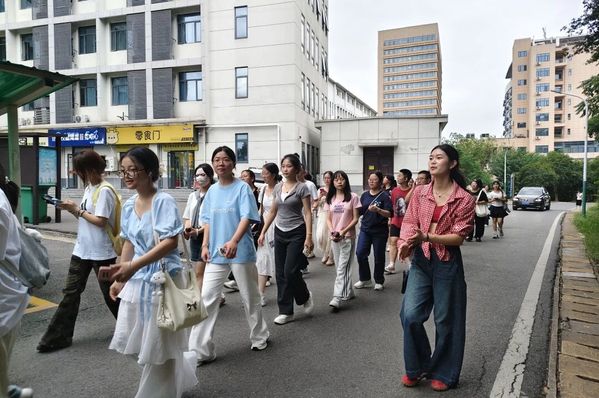 随后,游园会正式拉开帷幕。新生们分成三组,跟随各自的领队沿着精心设计的路线游览校园。
