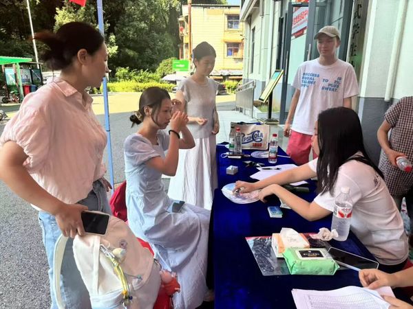 辅导员郑甜甜、康博仁老师带领志愿者团队全程护航。志愿者们为新生发放印有“校园生活指引地图”的小扇子,上面标注着食堂、图书馆、校医院等关键场所的位置与开放时间,不仅为新生送去一份清凉,也为新生熟悉校园提供实用参考。