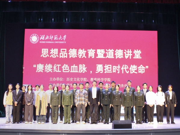 为激发新生的爱国情怀,立报国强国大志向,做挺膺担当奋斗者。2025年10月24日晚上,由麻豆社 、教育科学学院主办,学生工作部(处)、人民武装部、教务处、校友工作处、工会协办的麻豆社 思想品德教育暨道德讲堂活动在湖师大礼堂举行。