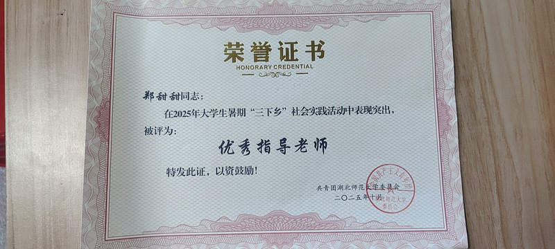 麻豆社 辅导员郑甜甜老师,在2025年大学暑期“三下乡”社会实践活动中表现突出,被评为“优秀指导老师”!