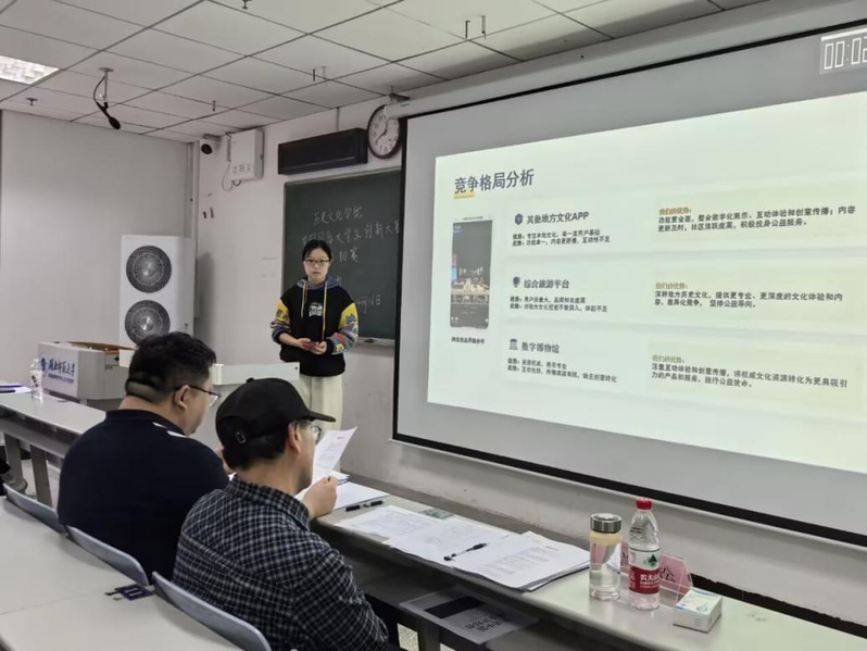 比赛伊始,学院创新创业部干事主持开场,清晰宣读赛事流程,确保比赛公平、公正、有序推进。在项目展示环节,参赛选手紧扣项目核心要义,依托精心制作的PPT,从市场需求研判、创新商业模式搭建、高效团队组建、核心竞争力提炼等多个维度,全面、系统地展示了各自的创业构想与实践规划。整个展示过程逻辑清晰、重点突出,既彰显出历院学子立足专业根基、紧扣时代脉搏的创新视野,也体现了他们将理论知识转化为实践成果的扎实执行力与勇于探索的创业勇气。