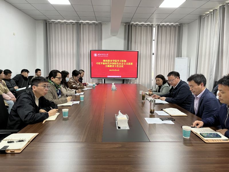 4月24日下午,继续教育学院在会议室开展学习贯彻习近平新时代中国特色社会主义思想主题教育工作会议暨“深入学习二十大 统筹发展与安全”主题党日活动,学院全体教工党员参加。
